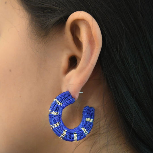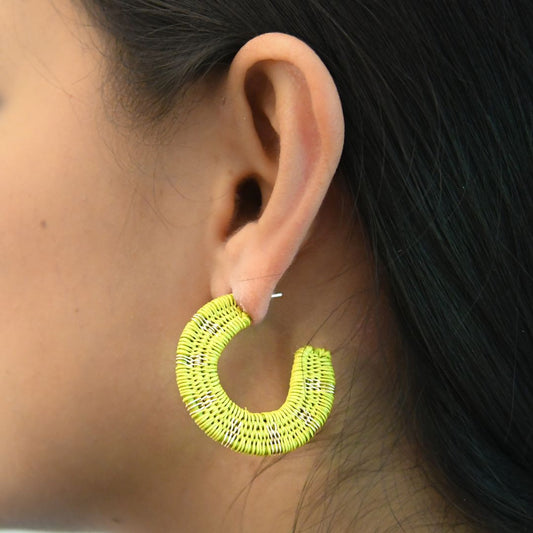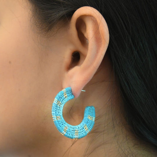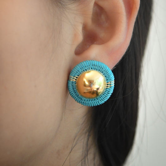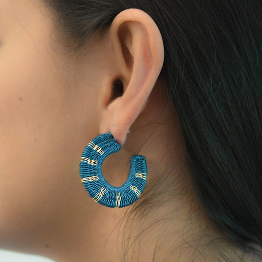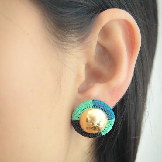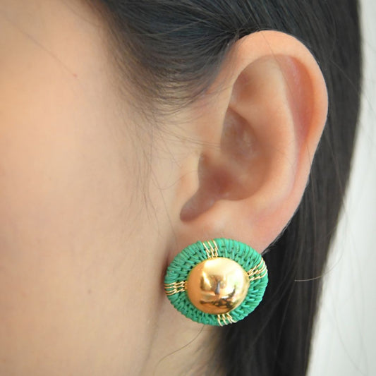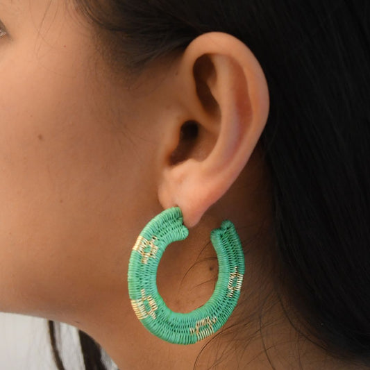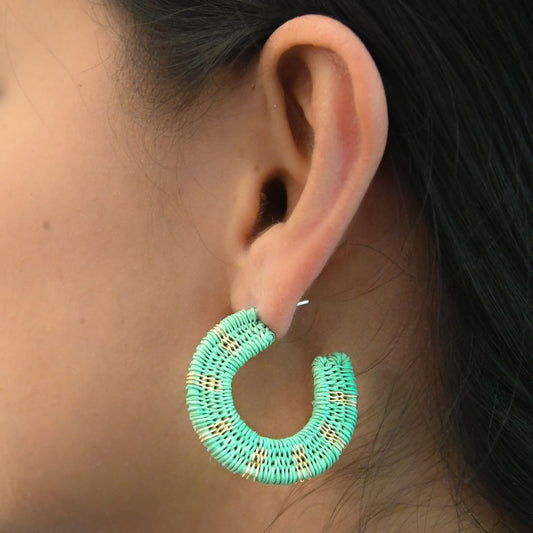 Créoles vert d’eau artisanales – fibres naturelles & fils d'or fin
