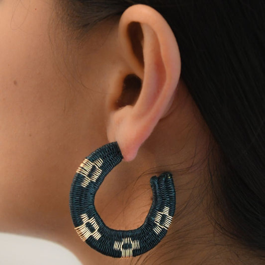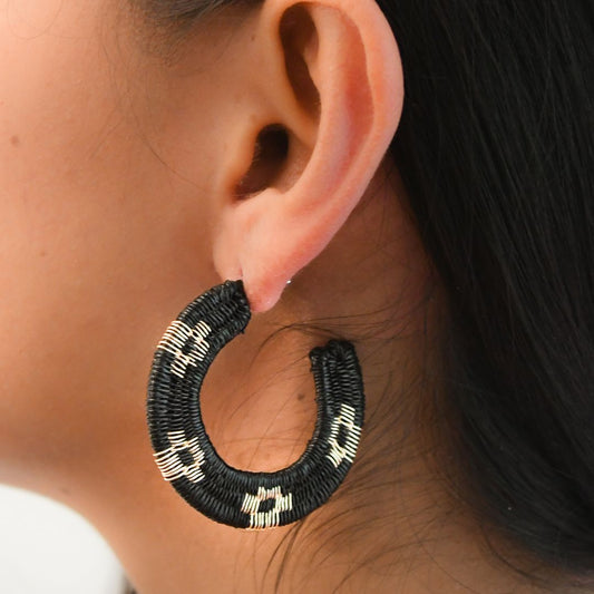 Créoles noires artisanales – fibres naturelles & fils dorés