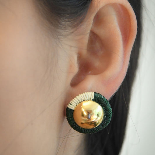 Créoles vert émeraude – fibres naturelles & fils dorés