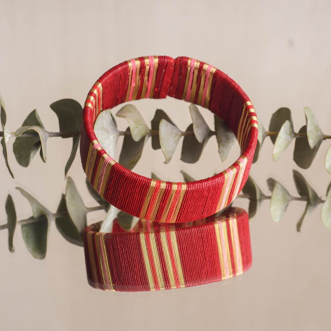 La Manchette Artisanal Rouge incarne la chaleur du soleil andin : rouge flamboyant ponctué de fibres dorés à l'or fin Motifs graphiques inspirés des fleurs tropicales, fabrication 100 % artisanale en Colombie. Ce bracelet manchette femme éthique rehausse une tenue black‑tie ou un tee‑shirt blanc avec la même intensité. Hypoallergénique, ajustable et livré dans un étui recyclé, il symbolise passion et engagement durable.